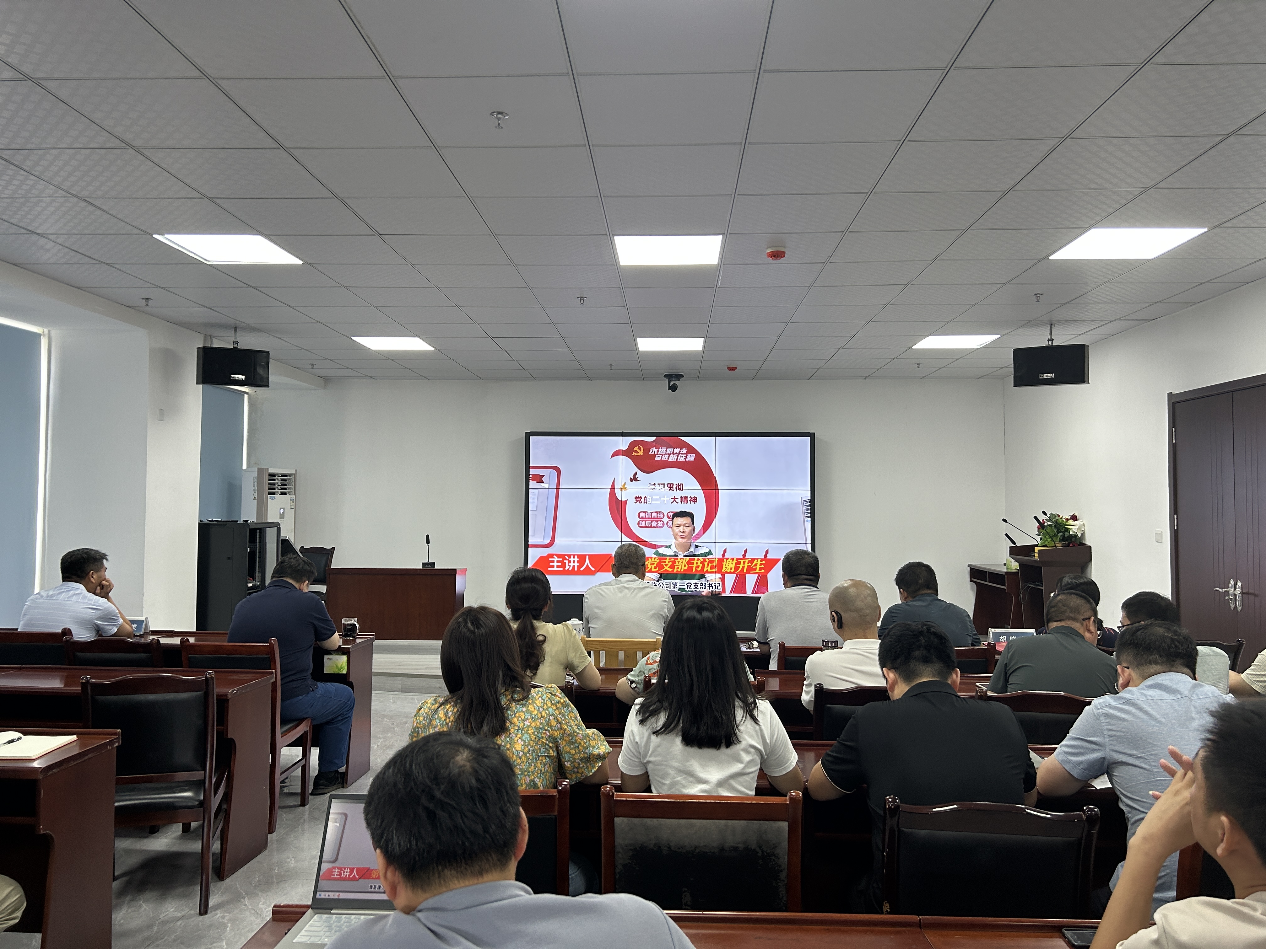 為全面深入學習貫徹黨的二十大精神,持續(xù)推動“黨課開講啦”活動深入開展,8月17日,公司黨委舉辦了“學思悟踐二十大 砥礪奮進新征程”微黨課比賽評比活動。公司黨委書記、董事長吳朝榮等領導班子成員、中層干部、各黨支部書記及支委成員共計30余人參加。
